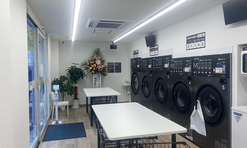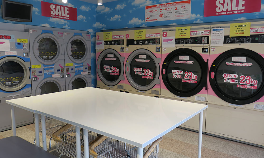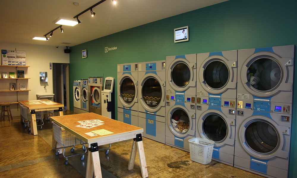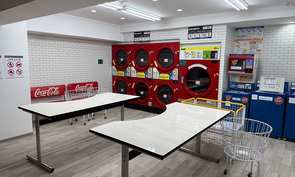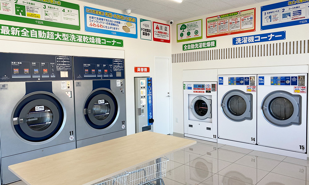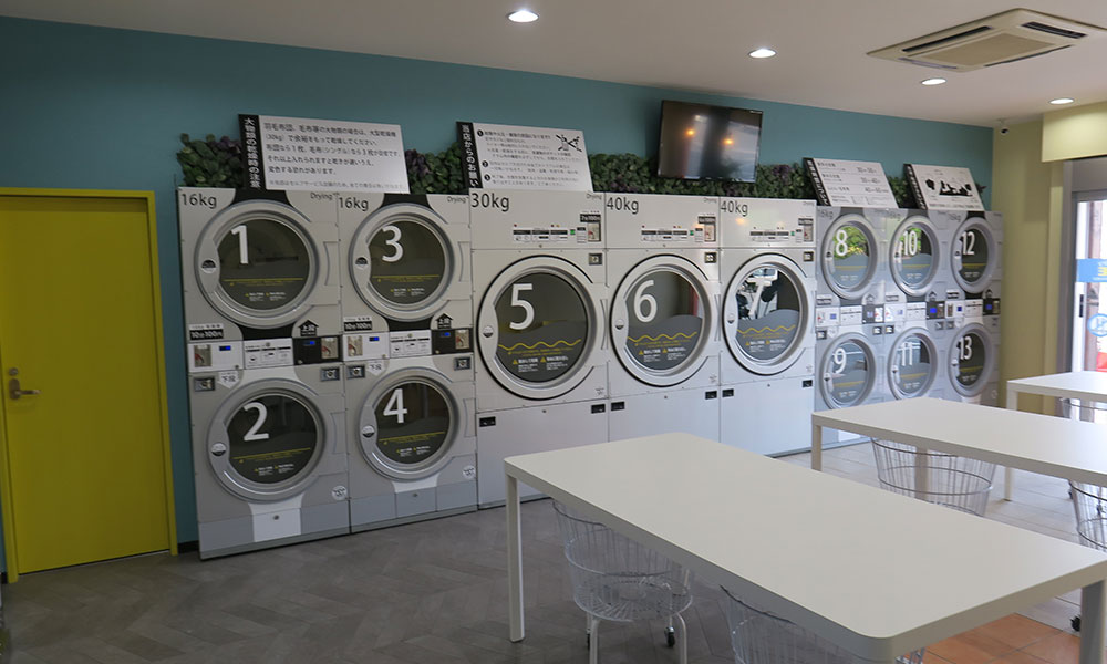 | 機械台数 | 洗濯機28㎏ 2台 洗濯乾燥機25㎏ 2台 乾燥機16㎏ 6口 乾燥機30㎏ 3口 スニーカーランドリー 1セット |