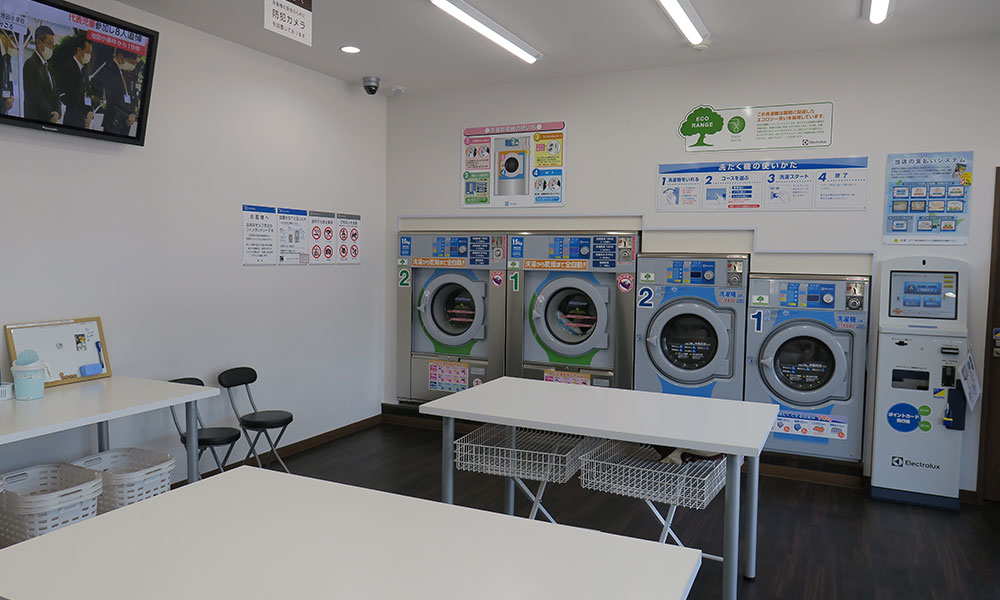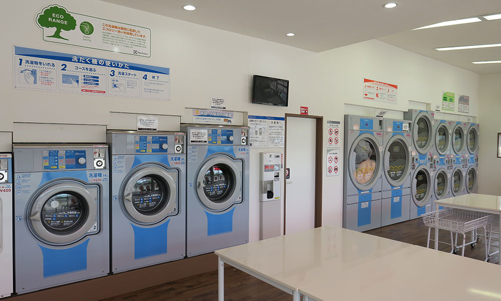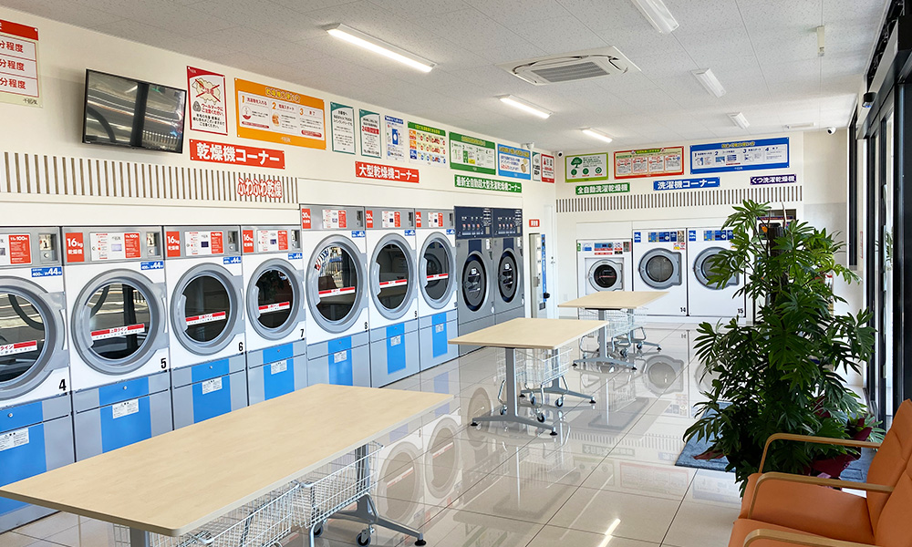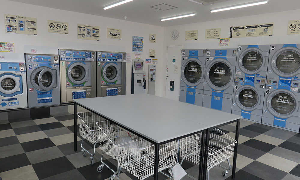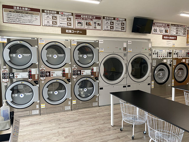 | 機械台数 | 洗濯機14㎏ 1台 洗濯機20㎏ 2台 洗濯乾燥機15㎏ 1台 洗濯乾燥機22㎏ 1台 乾燥機16㎏ 10口 乾燥機30㎏ 1口 乾燥機40㎏ 2口 スニーカーランドリー |