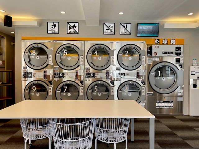 洗濯乾燥機23㎏ 1台 洗濯乾燥機16㎏ 2台 洗濯乾燥機10㎏ 2台 乾燥機14㎏ 6口 スニーカーランドリー マルチ端末(両替可・QRコード決済可・ランドリーカード販売) 乾燥機シート・漂白剤販売機 |